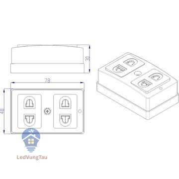 - Kiểu Thái lan, thích hợp khi lắp đơn lẻ hoặc phối hợp với các phần tử thiết bị điện khác trên Bảng điện hoặc đế gỗ.